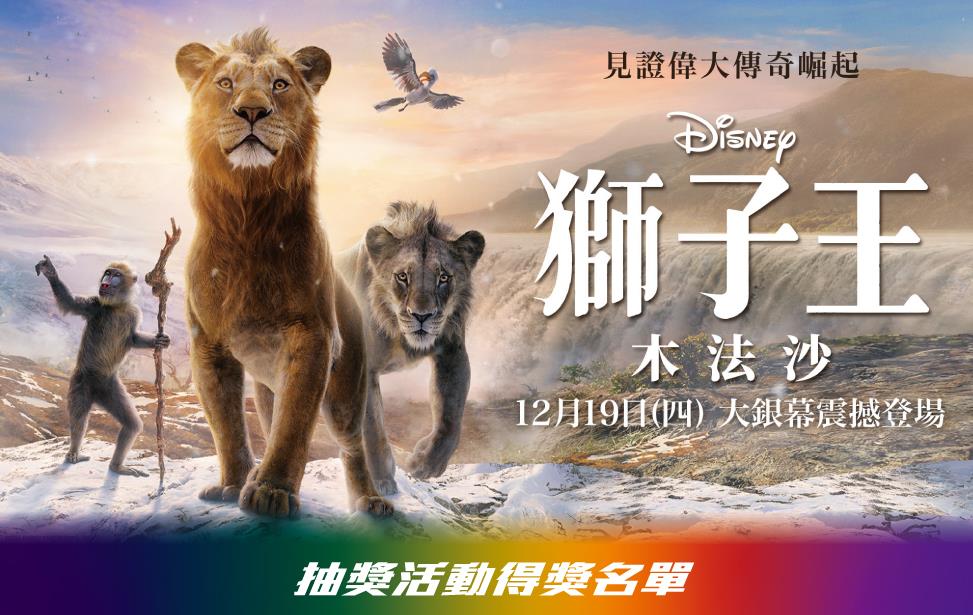 【獅子王:木法沙】抽獎活動得獎名單